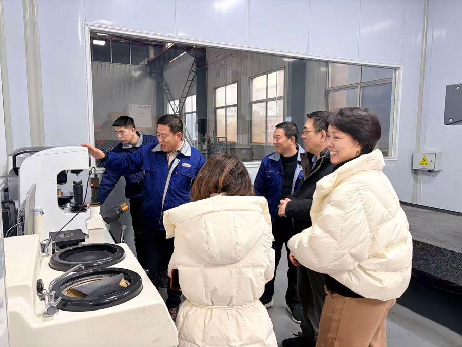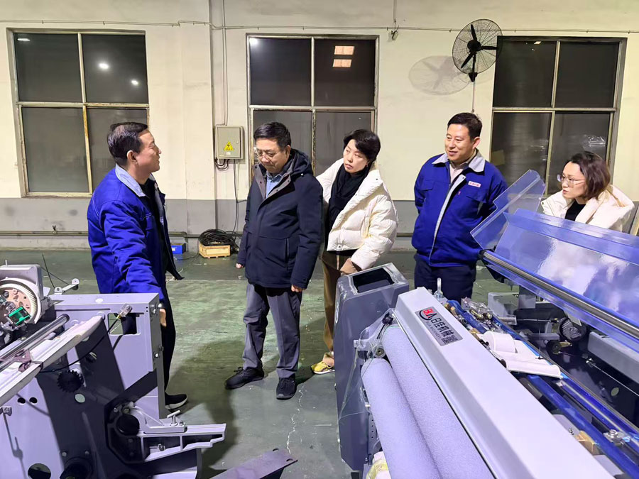 考察团一行先后深入青岛华尊日佳的生产车间、检测中心等核心区域,实地察看喷水织机、喷气织机等纺织机械整机及零部件的生产制造流程,近距离观摩精密检测设备的操作应用,详细了解企业在纺织机械研发、生产工艺优化、零部件加工精度把控等方面的技术成果与实践经验。在零部件生产展区,青岛华尊日佳技术人员向考察团细致讲解了各类核心零部件的材质、性能及适配场景,双方就长丝织造设备的技术升级、行业发展趋势等议题展开深入探讨。